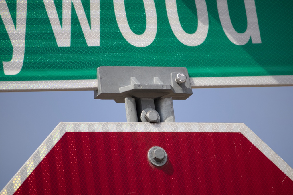 This bracket bolts to u-channel posts and is used to hold extruded street blades. Comes with two vandal resistant set screws for sign installation.